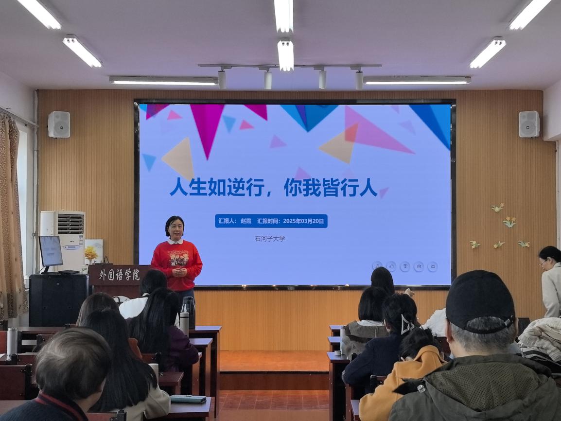 2025年3月20日,外国语学院公共外语教学系开展——“人生如逆行,你我皆行人”主题讲座。此次讲座邀请来自重庆大学支教的赵霞老师,旨在促进两校间的教学交流,为公共外语教学系的全体教师带来新的教学思路与经验。