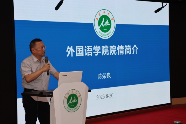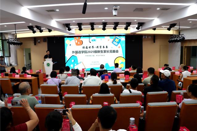 2025年8月30日下午,石河子大学外国语学院“语通世界 共育未来”2025级新生家长见面会在学院报告厅隆重举行。外国语学院党委书记陈荣泉、党委副书记罗才良、副院长李成、学办主任潘新仿、教办主任张楠、团委书记杨铭伟、英语系主任叶春莉、副主任邹晓惠、俄语系主任张洁、东语系主任摆永刚、波斯语专业负责人马玲玲,外教TARRAGONA MERNIES FLAVIA PAOLA、ALI DEXTER、ARJANG MOHANGHEGH、娜塔莎,以及新生辅导员、各班班主任和担任副班主任的学校机关教师共同出席,与80余位新生家长齐聚一堂,共话学生成长与成才。会议由学院党委副书记罗才良主持。