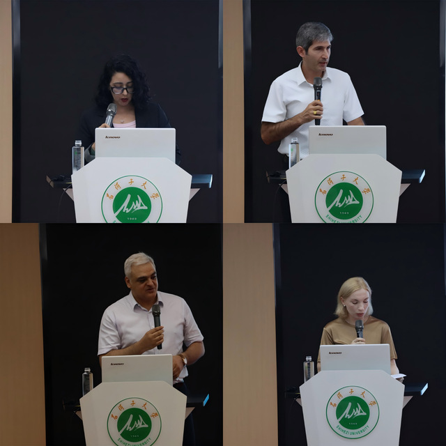 外教代表TARRAGONA MERNIES FLAVIA PAOLA、ALI DEXTER、ARJANG MOHANGHEGH和娜塔莎分别发言,表达了对石河子大学办学理念与校园环境的高度认可,承诺将全力支持学生的外语学习与跨文化能力培养,助力他们成长为真正的国际化人才。